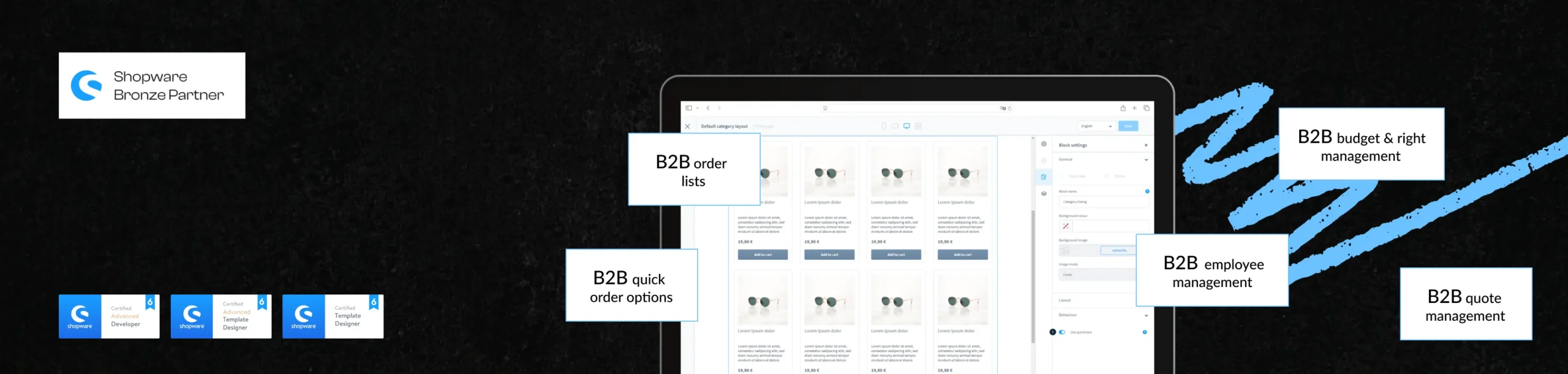 It’s the process of adapting Shopware to meet wholesale and enterprise needs like bulk orders, custom catalogs, and account hierarchies.